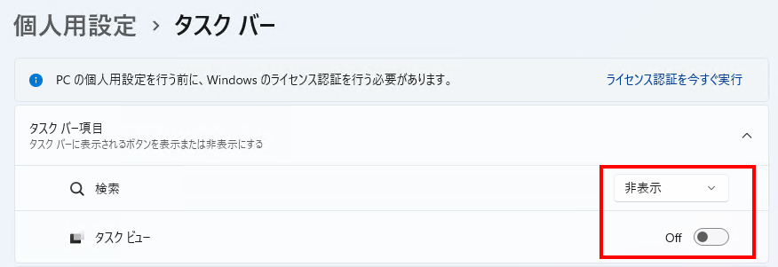 - 2) タスクバーの検索バーを消去する