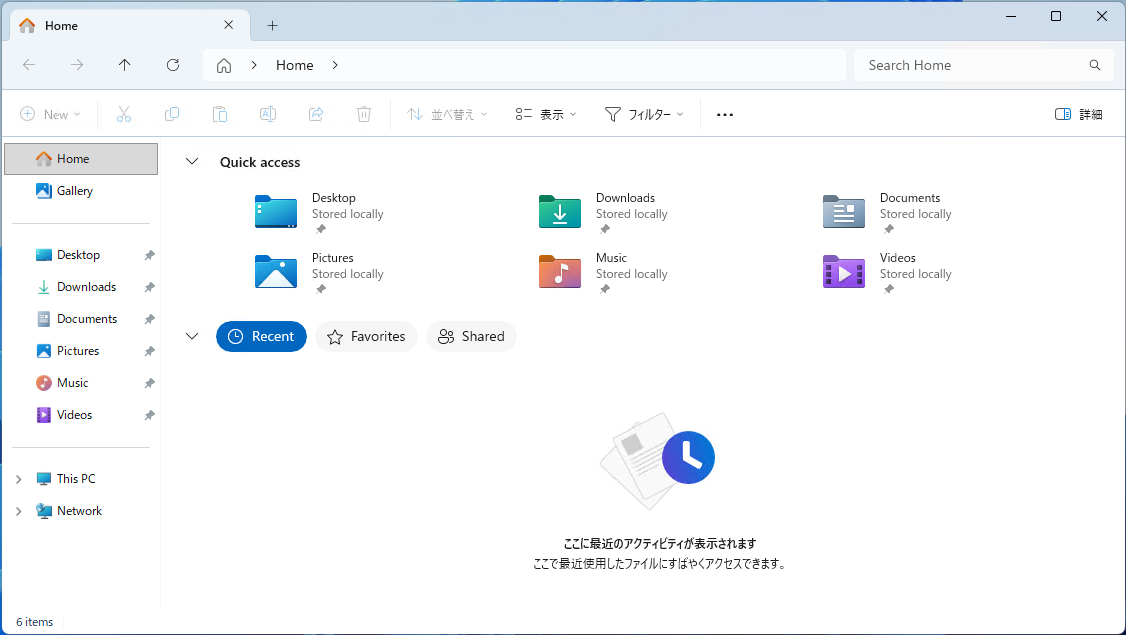 PC を開いたとき(もしくは Win + E)で表示されるエクスプローラーの初期表示を、ホームから PC に変更し、直前に操作した履歴類を表示しないようにします。PC を初めて触った最初の1週間くらいは便利かもしれませんが慣れてくると微妙な表示です。