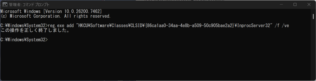 「管理者: コマンドプロンプト」に以下文字列を入力しエンターキーを入力